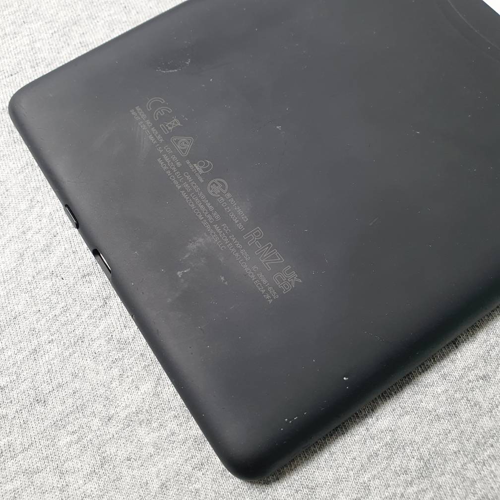 Màn hình máy đẹp, đã dán màn. Mặt lưng có những vết trắng bám vào, dù cố lau đi nhưng không sạch. Không ảnh hưởng đến trải nghiệm đọc sách.